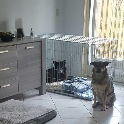 We zijn ondertussen verhuisd van het appartement naar een eengezinswoning, lekker hoor meer ruimte! Was even wennen in het begin voor ze dat ik niet meer beneden sliep maar boven, na een paar nachten even piepen onder aan de trap als ik boven was, gaan ze nu beide rustig onder aan de trap liggen slapen, ik heb ze gelijk geleerd niet de trap op te lopen wat ze goed opgepakt hebben.