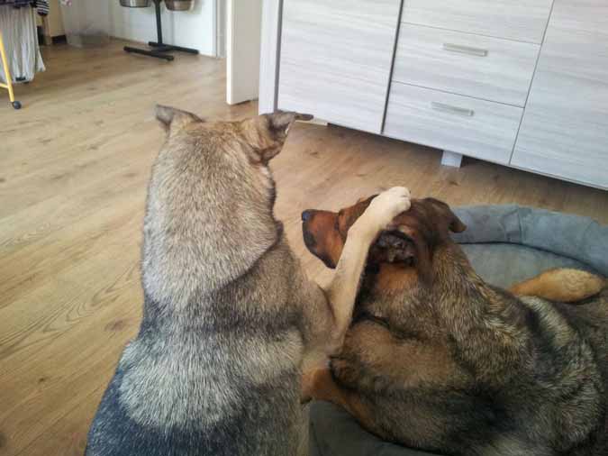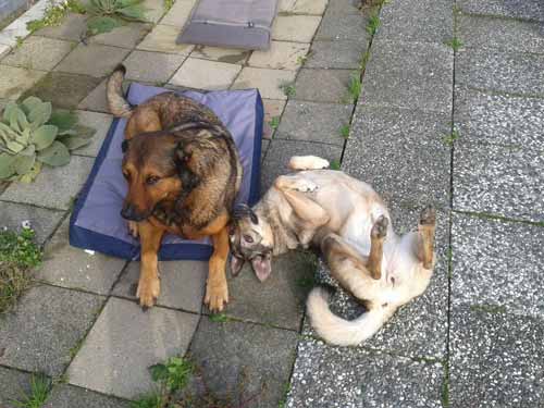 Max en Mila zijn echt een leuk stel, ze is graag bij hem en gaat ook altijd bij hem liggen soms kan ze hem verleiden tot een spelletje, buiten doen ze hun eigen ding maar houden elkaar wel in de gaten.