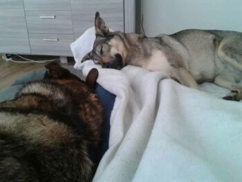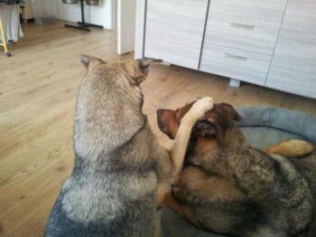 Wat is Mila toch een lieverd. Toen Elin kwam liet ze haar zorgzame kant zien door dat bange meisje te laten zien dat de wereld niet zo eng is. Sinds vorige week zondag is er een hondje van 15 jaar volgens zijn paspoort (foster hondje weet dat zijn kansen nihil zijn maar je weet maar nooit) aangekomen ook een angstige hond die niks gewend is en voor hem was ze ook gelijk zo lief en doet ze ook haar best. Als we thuis komen na een wandeling loopt ze gelijk naar hem toe om hem te begroeten en gaat regelmatig even bij hem kijken of bij hem zitten ♡ super toch! Trots om m’n meisje.