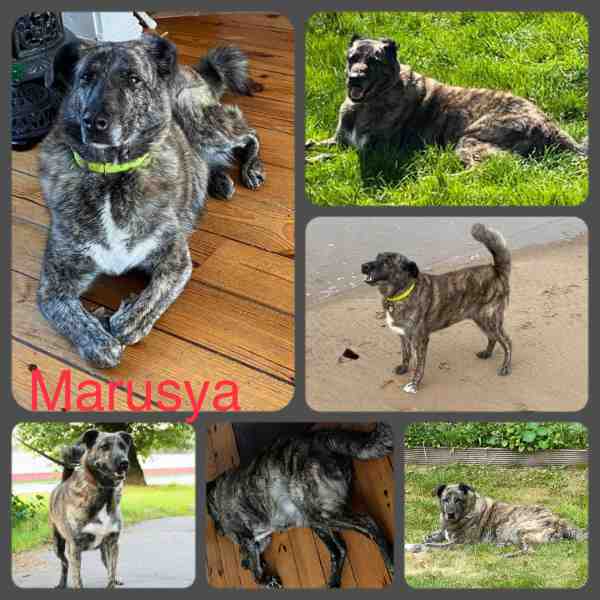 Deze mooi gestreepte dame is Marusya; een ideale gezinshond. Ze is lief en geniet van aandacht en liefde. Ze is graag in de buurt van mensen waar ze, op haar manier, mee communiceert.