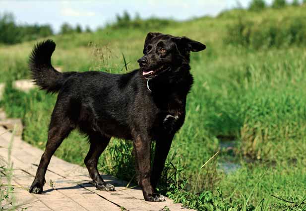 3. Appearance – mongrel. Mix of stray dog. Half color dark chocolate, smooth, fingertips white, white speck on the chest. Very funny ears: right hanging, left half standing.