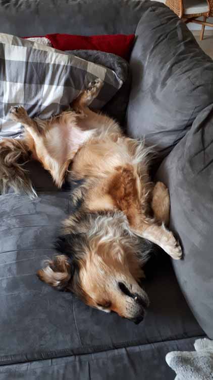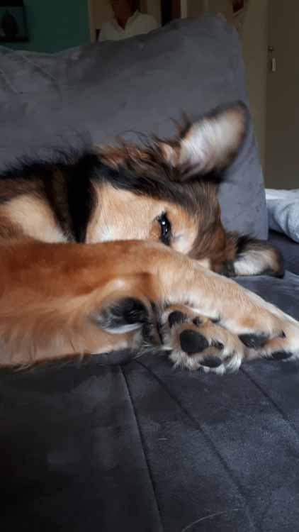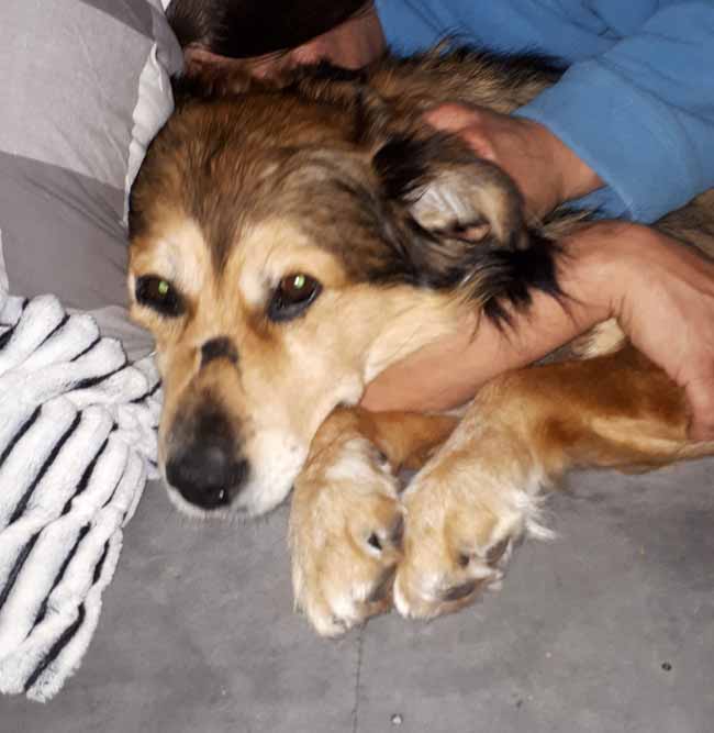 We zijn enorm gelukkig dat we zo’n top hond kunnen adopteren, hij is een droom die uitkomt. Hij begint zich te realiseren dat hij eindelijk thuis is en je ziet hem ontspannen. Ligt met vier poten in de lucht op zijn rug en slaakt dan een diepe zucht. Dank je wel voor al het goede werk dat jullie doen en het bij elkaar brengen van Mishka en ons.