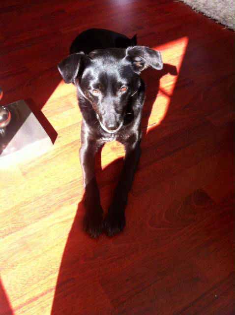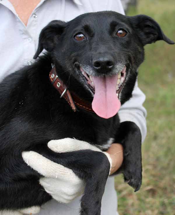 Muha is 5 years old, spayed, vaccinated, 38 cm, 10 kg. Black and very shiny smooth fur.