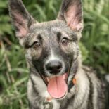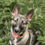Late on a cold winter evening, an ordinary girl, not a volunteer, was returning from her country house and stopped to throw the garbage into a container standing in the middle of a deserted field. When she opened the lid, she screamed in surprise, and four pairs of eyes stared at her. The little faces made plaintive noises. At first she thought they were little foxes, but when she shown the light on the phone, she realized that they were four small puppies still alive, shivering from cold, hunger and fear. Of course, she couldn’t drive past and leave these crumbs to die slowly. She took out a box and loaded it into the car. She brought them to Moscow and asked for help from MM volunteers. Among the kids there were 2 boys and 2 girls. Two boys were placed in Moscow, and two girls are now on animal transfer unit to Irina. The girls were named Myia and Uta. So, Myia is a cheerful, naughty puppy, very businesslike, friends with everyone-cats, dogs, children, strangers – all are friends. Height-43 cm, but still growing. Weight – 10 kg.