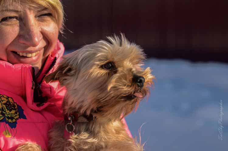 Noel was born approximately in 2011. She is typical York-terrier breed: her fur is smooth, silky, like human hair. No undercoat, almost no shedding. You can do haircuts, you can grow her hair longer. 4,5 kg., Height – 26 cm, neck – 20 cm, chest – 38 cm. No problems, healthy. But usually small dogs, in principle, do not have very good teeth, monitor the condition of teeth. Sterilized.
