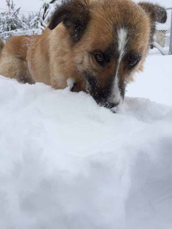 Van hele drukke hond werd je met de dag steeds rustiger, en het eten was een drama. In het begin at je niets. Het duurde wel twee weken voordat je begon te eten en toen had je verschrikkelijke voer nijd, ik liet het maar zo. Toen je drie maanden bij ons was werd je opeens bang op de straat en moesten we weer helemaal opnieuw beginnen. Weer vroeg ik me af of je bij ons wel gelukkig kon worden, maar in huis was je gewoon een hele lieve en voorbeeldige hond.