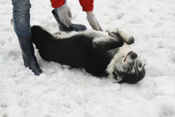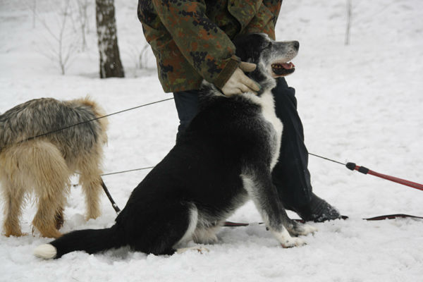 Houding tov volwassenen: Hij houdt van knuffelen en wordt graag geaaid. Zijn vrijwilliger zegt: Als ik ergens ga zitten, komt hij onmiddellijk aanrennen. Hij gaat met zijn voorpoten op mijn knieen of gaat naast me liggen en vraagt om geaaid te worden. Hij is altijd in de stemming om lekker geaaid en geknuffeld te worden. Sharik wandelt lekker rustig aan de lijn, hij trekt nooit. Als hij los loopt, luistert hij heel goed en komt altijd netjes terug. Als de vrijwilligster komt heeft ze altijd wat vlees, blikvoer of hondenworstjes mee en dat is natuurlijk smullen. Het is een goede, fatsoenlijke jongen.