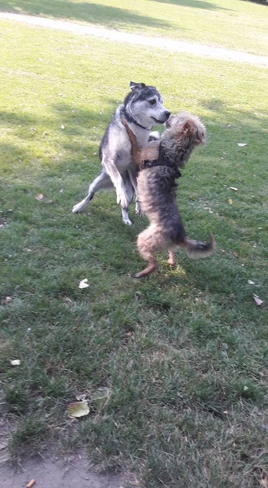 Houding tov andere honden: Hij gedraagt zich goed met andere honden. Zijn gedrag is stabiel, altijd hetzelfde. Een ontmoeting met nieuwe honden verloopt kalm en vriendelijk. Hij toont niet zoveel interesse om met andere honden te spelen.