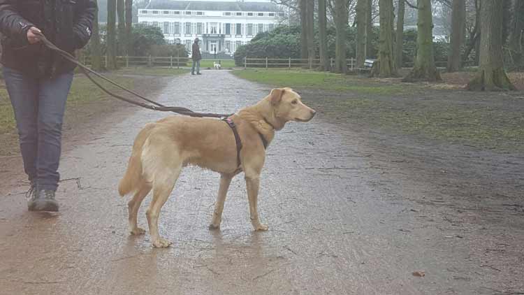 Gistermiddag heb ik Meggy en Tram meegenomen naar het natuurpark en losloopgebied. Het is helemaal afgezet en de toegangshekken vallen vanzelf achter je dicht, dus het leek me wel verantwoord om Tram los te laten. Ook al omdat ik gemerkt heb dat hij op Meggy en mij gericht is en niet heel erg geneigd is om zijn eigen gang te gaan. Dat was echt een succes, want wat heeft hij daarvan genoten! Ze hebben samen zo enorm lopen racen dat Tram nodig even wat water moest drinken uit de sloot, waar hij natuurlijk prompt in viel. Dat beviel hem prima, want hij koelde daar lekker van af, dus ik ben bang dat hij dat erin gaat houden. Daarna klom hij er aan de andere kant uit en ging eens lekker rennen in de ondergelopen ‘wetlands’ of grienden. Helaas kwam hij via het bruggetje weer terug en niet via de sloot, zodat niet meer te zien was dat hij zo’n mooie honingkleurige vacht heeft ?.